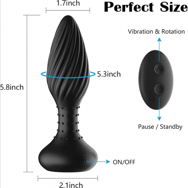 Анальний стимулятор підійде як для чоловіків, так і жінок. Стимулятор простати або красива анальна пробка з вібрацією, обертанням кульок та пультом має ергономічну форму та продуману конструкцію. Виконаний девайс із медичного силікону, матеріал приємний до тіла, не викликає подразнень та травмування у ніжних інтимних зонах, безпечний. За допомогою пульта можна вибирати один із 10 режимів стимуляції (вібрація + обертання кульок біля основи пробки). Водонепроникний, що дозволяє його мити під проточною водою і грати з ним у душі. Але повністю занурювати його у воду не рекомендується. Перед використанням ребристу секс-іграшку необхідно змастити лубрикантом на водній основі, з мастилом відчуття будуть ще ефектнішими.
